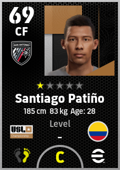 . Santiago Patiño is a Center Forward footballer from Colombia who plays for San Antonio Fc in eFootball 2026.