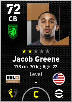 . Jacob Greene is a Center Back footballer from United States who plays for Lexington Sc in eFootball 2026.
