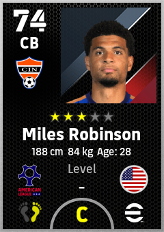 . Miles Robinson is a Center Back footballer from United States who plays for Cincinnati Ob in eFootball 2026.