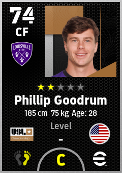 . Phillip Goodrum is a Center Forward footballer from United States who plays for Louisville City Fc in eFootball 2026.