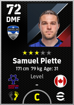 . Samuel Piette is a Defensive Midfielder footballer from Canada who plays for Montreal Bwb in eFootball 2026.