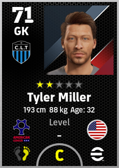 . Tyler Miller is a Goalkeeper footballer from United States who plays for Charlotte Bbgw in eFootball 2026.