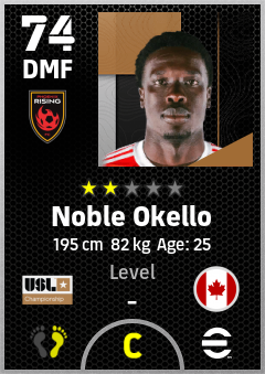 . Noble Okello is a Defensive Midfielder footballer from Canada who plays for Phoenix Rising Fc in eFootball 2026.