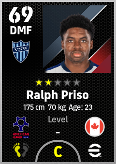 . Ralph Priso is a Defensive Midfielder footballer from Canada who plays for Vancouver Bw in eFootball 2026.