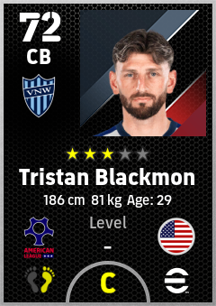 . Tristan Blackmon is a Center Back footballer from United States who plays for Vancouver Bw in eFootball 2026.