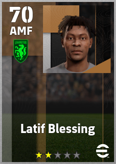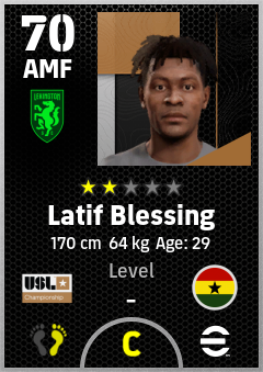 . Latif Blessing is a Attacking Midfielder footballer from Ghana who plays for Lexington Sc in eFootball 2026.