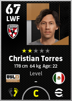 . Christian Torres is a Left Wing Forward footballer from Mexico who plays for Loudoun United Fc in eFootball 2026.
