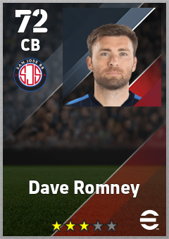 . Dave Romney is a Center Back footballer from United States who plays for San Jose Bb in eFootball 2026.
