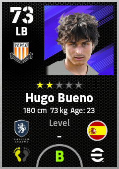 . Hugo Bueno is a Left Back footballer from Spain who plays for Wolverhampton Yb in eFootball 2026.