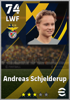 . Andreas Schjelderup is a Left Wing Forward footballer from Norway who plays for Sl Benfica in eFootball 2026.