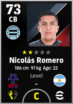 . Nicolás Romero is a Center Back footballer from Argentina who plays for Minnesota Gb in eFootball 2026.