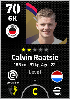 . Calvin Raatsie is a Goalkeeper footballer from Netherlands who plays for Excelsior Rotterdam in eFootball 2026.