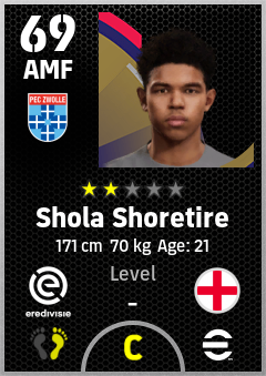 . Shola Shoretire is a Attacking Midfielder footballer from England who plays for Pec Zwolle in eFootball 2026.