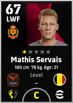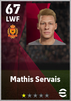 . Mathis Servais is a Left Wing Forward footballer from Belgium who plays for Mechelen Gr in eFootball 2026.