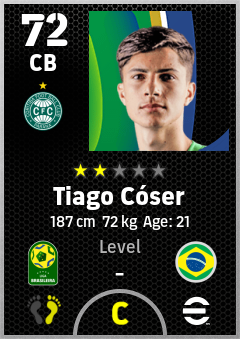 . Tiago Cóser is a Center Back footballer from Brazil who plays for Curitiba Bv in eFootball 2026.