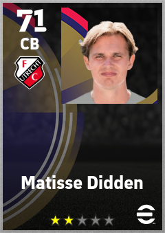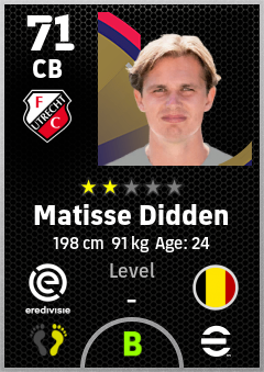 . Matisse Didden is a Center Back footballer from Belgium who plays for Fc Utrecht in eFootball 2026.
