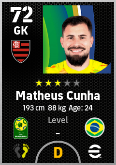 . Matheus Cunha is a Goalkeeper footballer from Brazil who plays for Cr Flamengo in eFootball 2026.