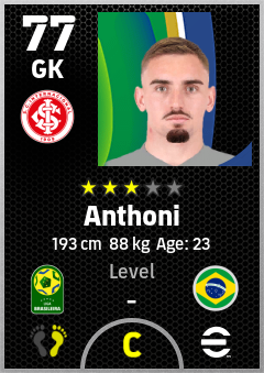 . Anthoni is a Goalkeeper footballer from Brazil who plays for Sc Internacional in eFootball 2026.