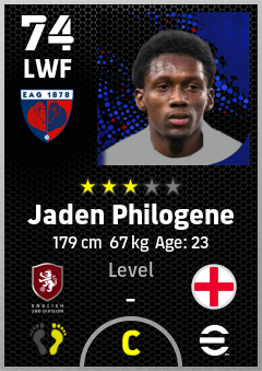 . Jaden Philogene is a Left Wing Forward footballer from England who plays for Ipswich Bw in eFootball 2026.