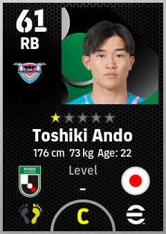 . Toshiki Ando is a Right Back footballer from Japan who plays for Sagan Tosu in eFootball 2026.