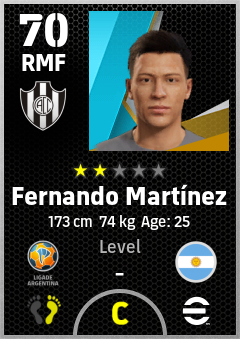 . Fernando Martínez is a Right Midfielder footballer from Argentina who plays for Santiago Del Estero Bn in eFootball 2026.