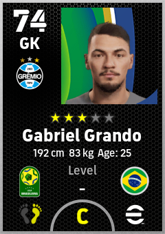 . Gabriel Grando is a Goalkeeper footballer from Brazil who plays for Grêmio Fbpa in eFootball 2026.
