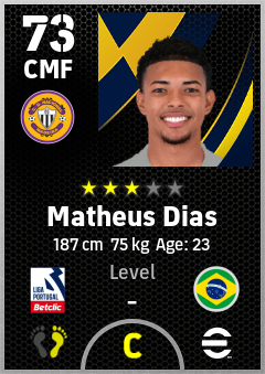 . Matheus Dias is a Center Midfielder footballer from Brazil who plays for Cd Nacional in eFootball 2026.