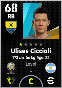 . Ulises Ciccioli is a Right Back footballer from Argentina who plays for Rosario Aa in eFootball 2026.