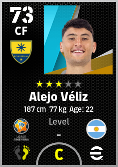 . Alejo Véliz is a Center Forward footballer from Argentina who plays for Rosario Aa in eFootball 2026.
