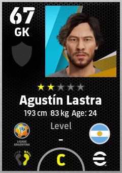 . Agustín Lastra is a Goalkeeper footballer from Argentina who plays for Río Cuarto Ab in eFootball 2026.