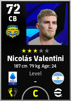 . Nicolás Valentini is a Center Back footballer from Argentina who plays for Hellas Verona Fc in eFootball 2026.