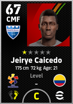 . Jeirye Caicedo is a Center Midfielder footballer from Colombia who plays for Pasto Raa in eFootball 2026.
