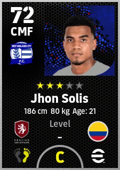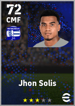 . Jhon Solis is a Center Midfielder footballer from Colombia who plays for Birmingham B in eFootball 2026.