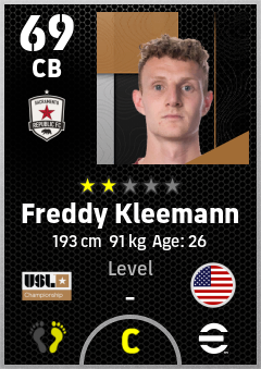 . Freddy Kleemann is a Center Back footballer from United States who plays for Sacramento Republic Fc in eFootball 2026.