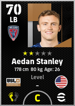. Aedan Stanley is a Left Back footballer from United States who plays for Indy Eleven in eFootball 2026.