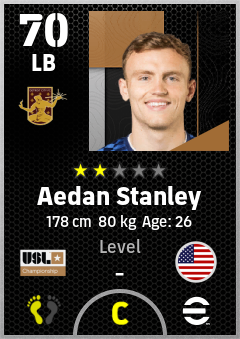 . Aedan Stanley is a Left Back footballer from United States who plays for Detroit City Fc in eFootball 2026.