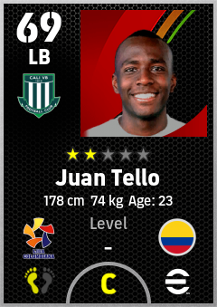 . Juan Tello is a Left Back footballer from Colombia who plays for Cali Vb in eFootball 2026.