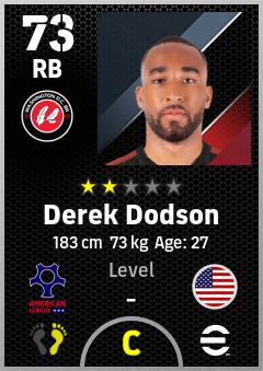 . Derek Dodson is a Right Back footballer from United States who plays for Washington D.c. Br in eFootball 2026.