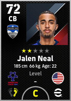 . Jalen Neal is a Center Back footballer from United States who plays for Montreal Bwb in eFootball 2026.