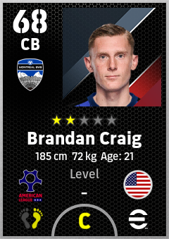 . Brandan Craig is a Center Back footballer from United States who plays for Montreal Bwb in eFootball 2026.