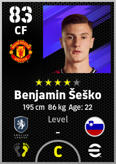 . Benjamin Šeško is a Center Forward footballer from Slovenia who plays for Manchester United in eFootball 2026.