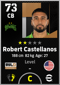 . Robert Castellanos is a Center Back footballer from United States who plays for Tampa Bay Rowdies in eFootball 2026.
