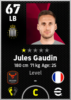 . Jules Gaudin is a Left Back footballer from France who plays for Charleroi Zw in eFootball 2026.