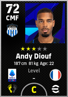 . Andy Diouf is a Center Midfielder footballer from France who plays for Internazionale Milano in eFootball 2026.