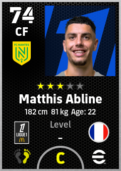 . Matthis Abline is a Center Forward footballer from France who plays for Fc Nantes in eFootball 2026.
