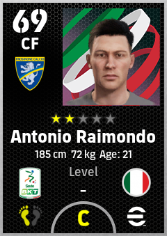 . Antonio Raimondo is a Center Forward footballer from Italy who plays for Frosinone Ga in eFootball 2026.