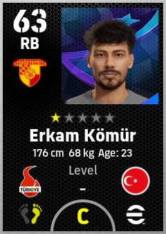 . Erkam Kömür is a Right Back footballer from Türkiye who plays for Göztepe Sk in eFootball 2026.