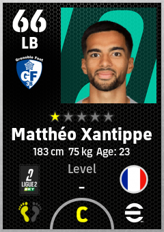 . Matthéo Xantippe is a Left Back footballer from France who plays for Grenoble Foot 38 in eFootball 2026.