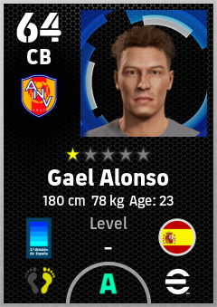 . Gael Alonso is a Center Back footballer from Spain who plays for Andorra La Vella Aar in eFootball 2026.