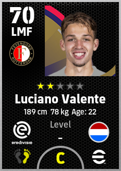 . Luciano Valente is a Left Midfielder footballer from Netherlands who plays for Feyenoord in eFootball 2026.